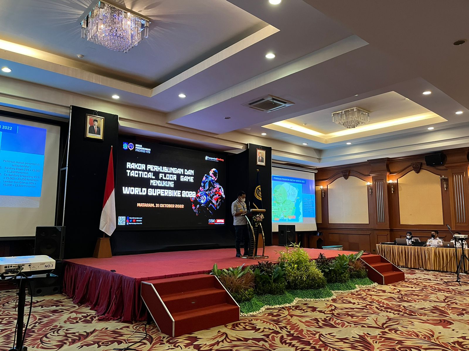 NTB EXPOSE. Mataram—Dalam rangka menggelar event kejuaraan dunia, World Superbike (WSBK) 2022, Dinas Perhubungan Provinsi NTB mengadakan Rapat Koordinasi Tactical Floor Game (TFG) sebagai bentuk simulasi persiapan di lapangan, yang diadakan di Hotel Lombok Raya pada Senin (31/10).