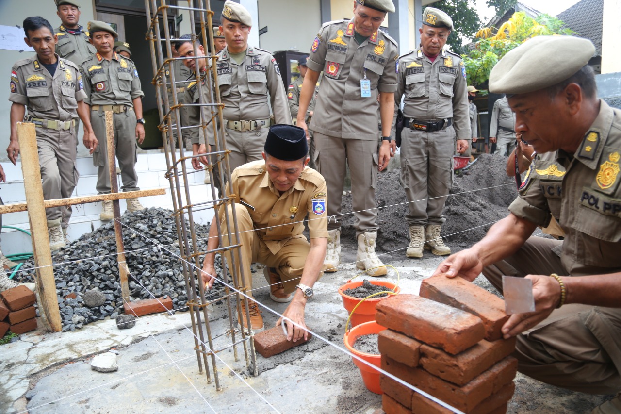 NTB EXPOSE. Lombok Tengah – Bupati Lombok Tengah, H. Lalu Pathul Bahri, S.Ip melakukan peletakan Bata Pertama pembangunan Mushalla Praja Wibawa Satpol PP Kabupaten Lombok Tengah kemarin (26/12). Mushalla Praja Wibawa yang dibangun ini berukuran 5 X 5 Meter persis berada di halaman belakang Kantor Satpol PP setempat. Saat melakukan peletakan Bata Pertama, Bupati didampingi oleh Kasat Pol PP Kabupaten Lombok Tengah, Drs. Lalu Rinjani, M.Si dan disaksikan oleh beberapa anggota Satpol PP. Dengan adanya Mushalla ini, Bupati berharap anggota Satpol PP dapat melaksanakan ibadah shalat dengan berjamaah dan sebagai lokasi kegiatan Imtaq nantinya. “Semoga dengan adanya Mushalla ini, para anggota Satpol PP dapat shalat berjamaah dan sebagai lokasi dilaksanakannya kegiatan Imtaq,” ujarnya. Untuk diketahui, selama ini, anggota Satpol PP Loteng melaksanakan ibadah shalat di masing-masing ruangan.