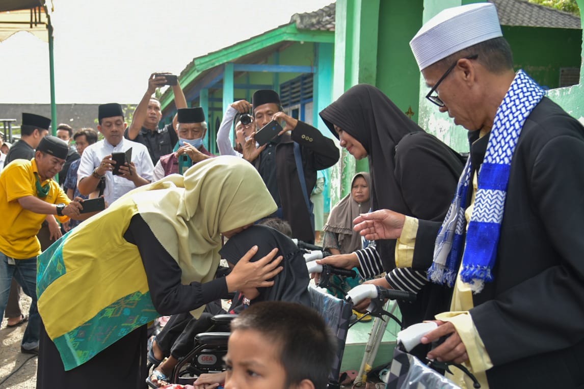 NTB EXPOSE. Lombok Tengah -Memasuki sepuluh hari kedua bulan suci Ramadhan, Ketua Lembaga Koordinasi Kesejahteraan Sosial (LKKS) Provinsi NTB, Hj.Niken Saptarini Zulkieflimansyah menyerahkan kursi roda kepada Divabel di Desa Pringgarata, Lombok Tengah.