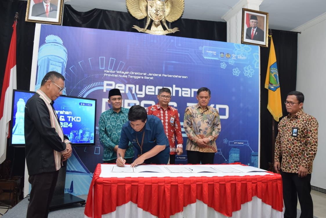Penyerahan DIPA (Daftar Isian Pelaksanaan Anggaran) dan TKD (Transfer ke Daerah) secara digital di Pendopo Gubernur, Selasa (12/12) kepada Sekretaris Daerah, HL Fathurahman mewakili Pj Gubernur Drs HL Gita Ariadi, MSi dihadiri pula oleh para Bupati dan Walikota.