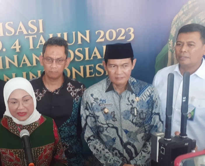 NTB EXPOSE. Lombok Tengah. Wakil Bupati Lombok Tengah Dr. H. Moh. Nursiah S.Sos M.Si saat mendampingi Menteri Ketenagakerjaan mengatakan, bahwa ia sangat bersyukur bisa bersilaturahmi bersama ibu Menteri Ketenagakerjaan, Ida Fauziyah di Kabupaten Lombok Tengah dalam rangka mensosialisaikan Permenaker No 4 tahun 2023 tentang Jaminan Sosial Pekerja migran Indonesia, di GOR Politeknik Pariwisata Lombok di Puyung Jonggat Lombok Tengah. (12/12) kemarin.