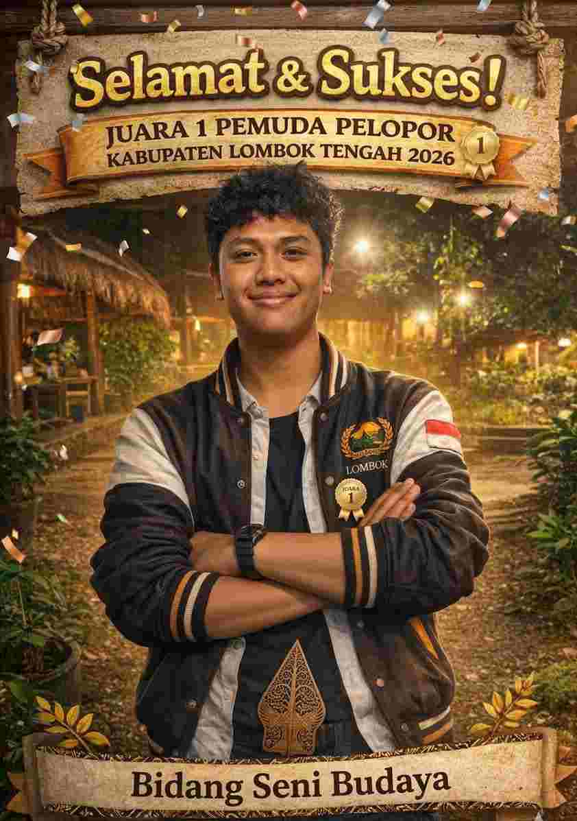 Prestasi membanggakan kembali lahir dari rahim Bumi Tatas Tuhu Trasna. Galih Gentar Wardana, pemuda berprestasi asal Desa Wisata Bonjeruk Kecamatan Jonggat Kabupaten Lombok Tengah. Propinsi NTB, secara resmi dinobatkan sebagai Juara 1 Pemuda Pelopor Kabupaten Lombok Tengah 2026 pada bidang Seni dan Budaya, Jumat (13/03/2026) kemarin.