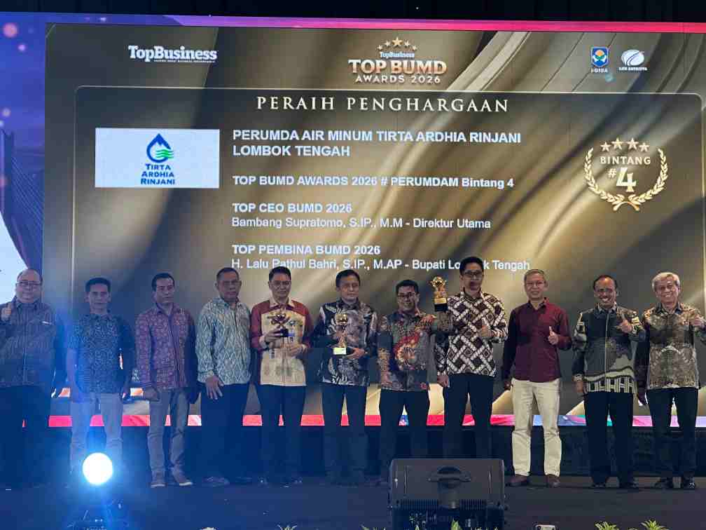 NTB EXPOSE. Jakarta – Perumda Air Minum Tirta Ardhia Rinjani Kabupaten Lombok Tengah merupakan satu-satunya PDAM di NTB berhasil meraih penghargaan TOP BUMD Bintang 4 pada ajang TOP BUMD Awards 2026 yang diselenggarakan oleh Majalah Top Business bekerja sama dengan MSI Group. Kegiatan tersebut berlangsung di Hotel Raffles, Kuningan, Jakarta Pusat, Senin (13/4/2026).